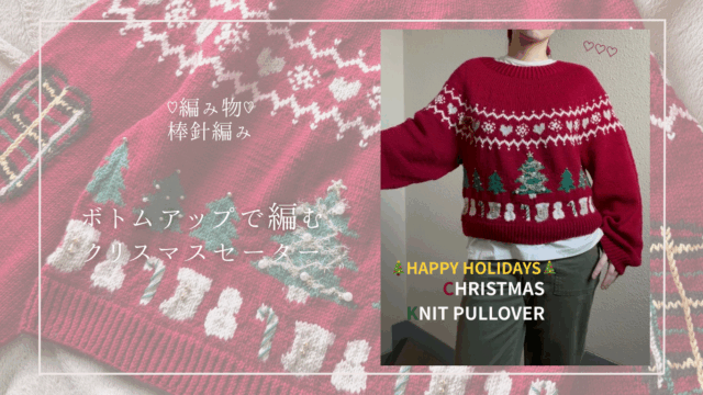 自身の体型的にはドロップショルダーが1番着痩せするような気がして好きなのですが、クリスマス用にどうしても編みたいものが丸ヨークが良さそうで、練習も兼ねてとりあえず単色無地で挑戦してみました。